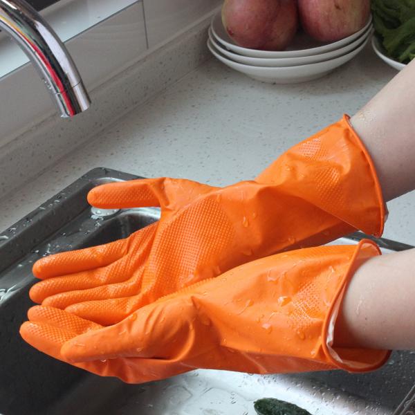 Dishwashing Latex Kitchen Flocklined Rubber Gloves Different Sizes High Tensile Strength